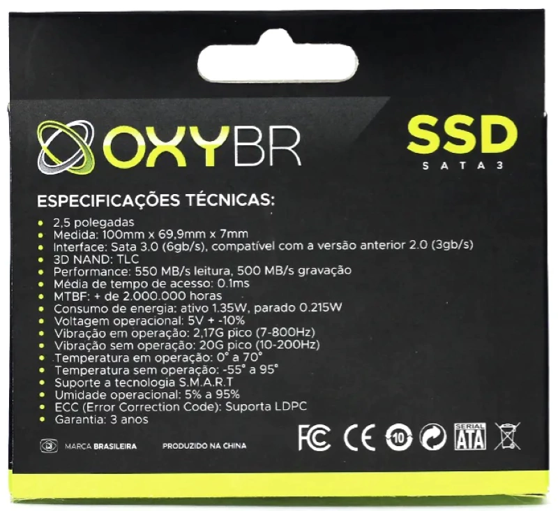 Dê uma nova vida ao seu computador com o SSD 480GB SATA III da OxyBR. Experimente um aumento significativo na velocidade de leitura e gravação, com taxas de até 550Mb/s e 450Mb/s, respectivamente. Ideal para substituir o disco rígido tradicional, proporcionando inicialização rápida do sistema, carregamento de aplicativos e transferência de arquivos em alta velocidade. O formato de 2,5" garante compatibilidade com a maioria dos notebooks e desktops.