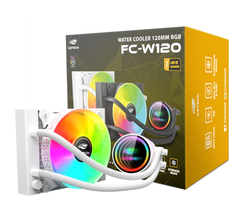 Mantenha seu PC com a temperatura ideal com o WaterCooler C3 Tech FC-W120RGB Branco. Compatível com uma ampla gama de sockets Intel e AMD, este sistema de refrigeração líquida oferece alta performance e baixo ruído. Seu radiador de 120mm e fan RGB proporcionam não só eficiência na dissipação de calor, mas também um visual moderno e elegante para o seu setup. Ideal para gamers e entusiastas que buscam o máximo desempenho e estilo.
